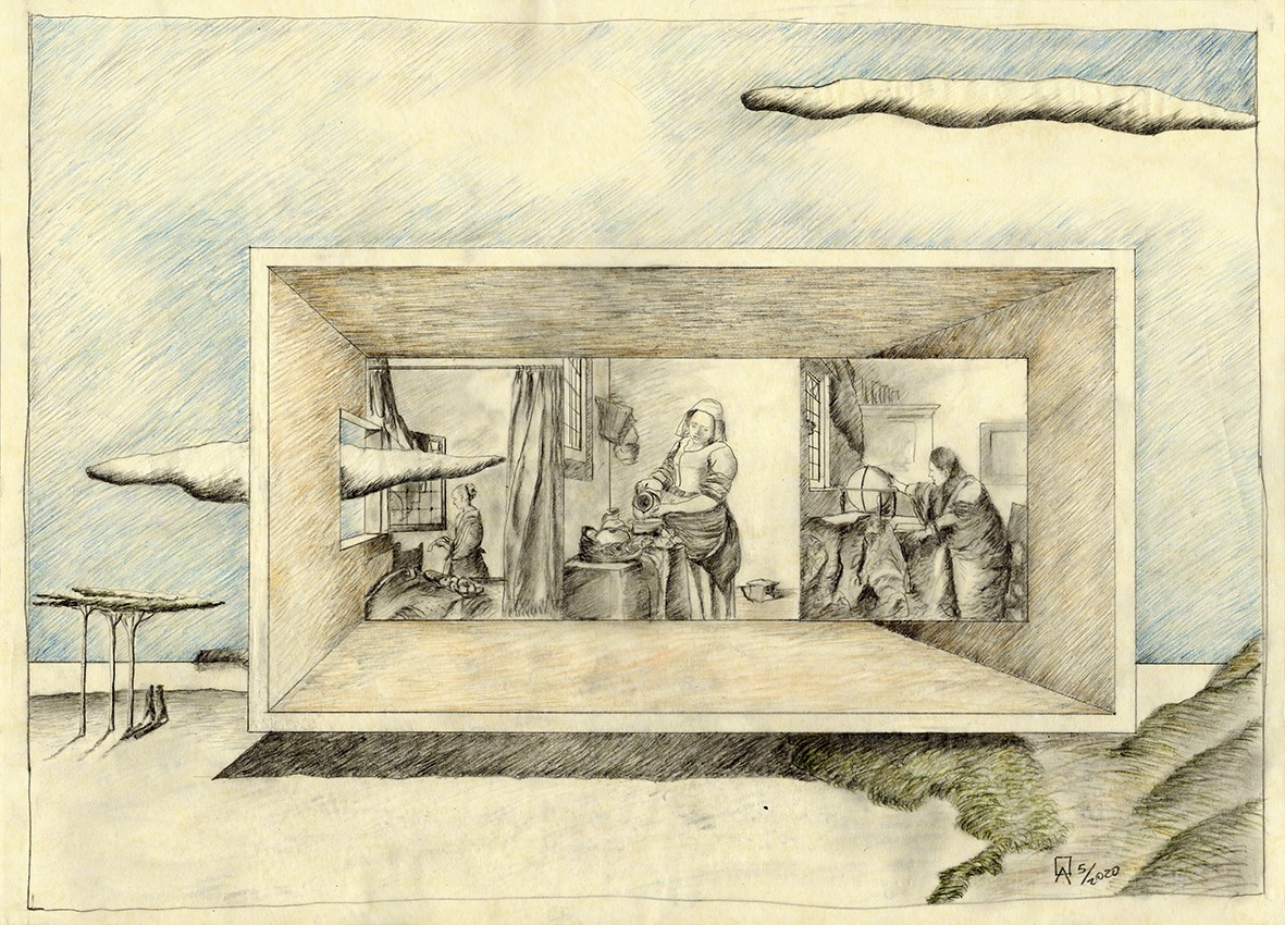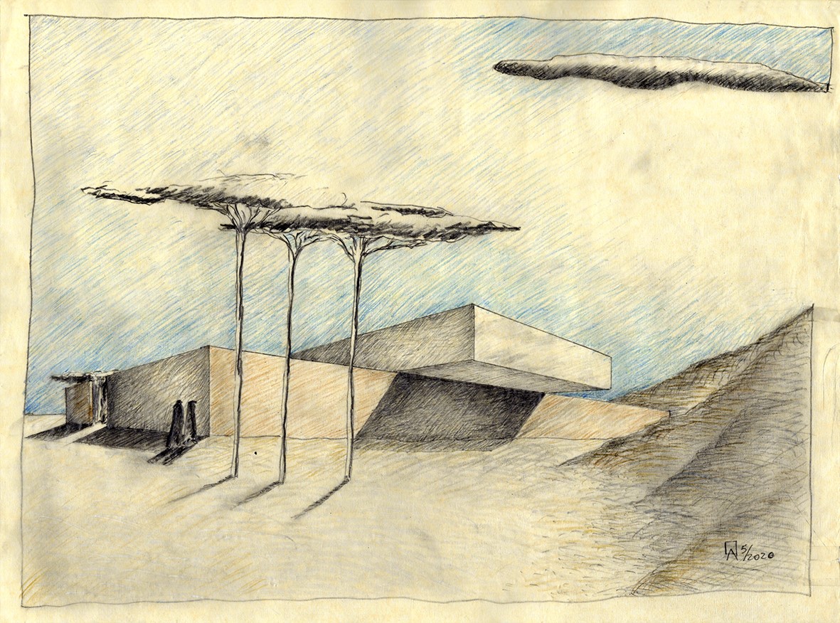 3 - Ottavio Amaro, Casa con scala levatoia, maggio 2020, schizzi.
