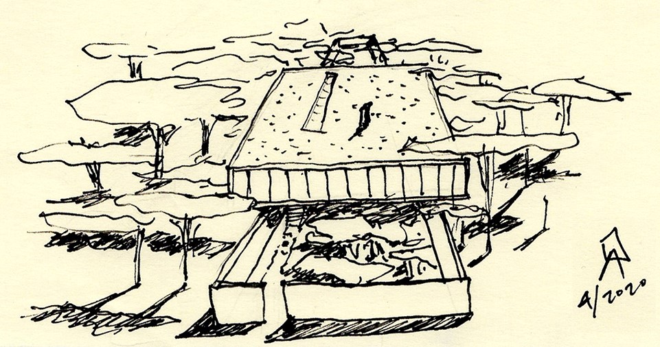 4 - Ottavio Amaro, Casa con scala levatoia, maggio 2020, schizzo.