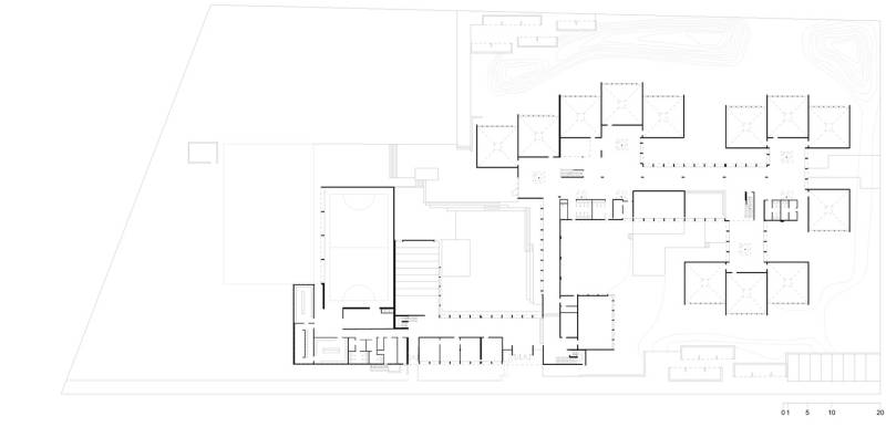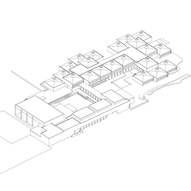 In the Locarno school, classrooms are the heart of the project both as teaching units or places of teacher-pupil interaction and as primary elements of the village system or homes. A cluster of classrooms defines the pavilion typology, each unit is covered with a pyramidal roof whose peculiarity allows its volumetric identification. In the logic of school as a village, classrooms recall individual houses, the focus of the village and every educational activity.
