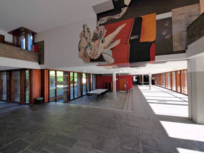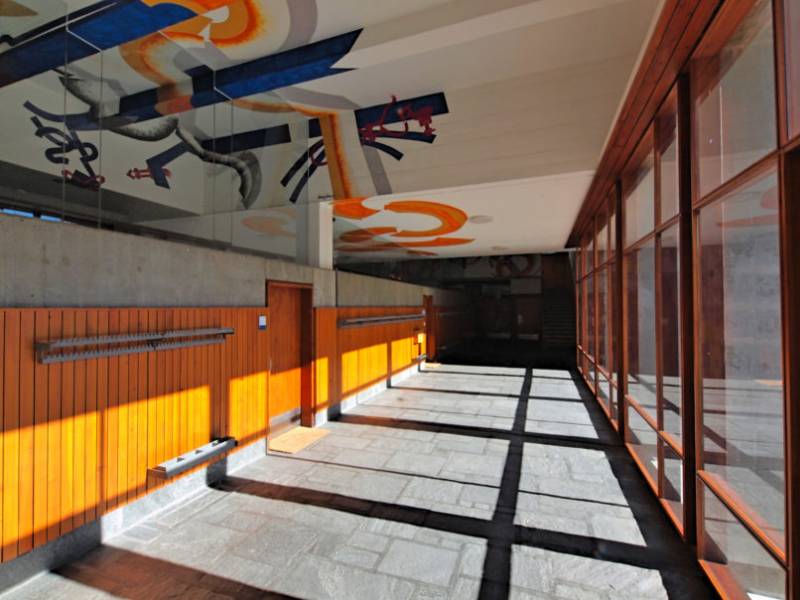 Walking through this distributive network of rooms becomes a learning experience in itself, because of the contact with the different classes and the substantial presence of works of art, which complete the space, making the school in Locarno a unique case (Martinoli 2015). Schnebli works with numerous artists toward an aesthetic educative programme, stating that «perhaps in no building is the presence of art as important as in schools. Children are the most likely to perceive its value» (1966a). In the Locarno one, artists enjoy total freedom, both in terms of subject matter and means of expression, which allows them to intervene with their creations. According to the architect, the art arrangement is reminiscent of a promenade through a typical Ticino village where various works can be encountered (Schnebli 1966a).