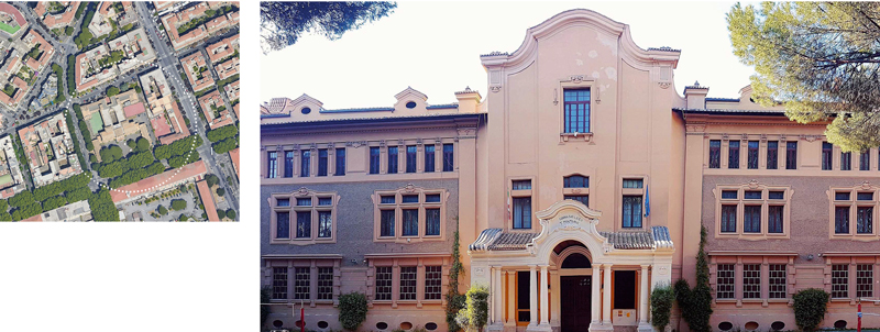Most of the buildings built in those years relate to the perimeter of the urban block according to a courtyard or semi-courtyard system, and establish a hierarchical relationship, also through the architectural facings, with the urban morphology of the neighborhood. In general, what is observed in the first new school building projects in Rome at the beginning of the last century, in fact, is the attempt to coordinate the problem of inserting the new building into the urban fabric and the principles of the new pedagogy that are spreading throughout Europe, in particular the issue of “outdoor schools”, therefore the use of entrance spaces, terraces, loggias, internal gardens or that surround the building, although in Roman school buildings the internal system is characterized by symmetrical courtyards or semi-courtyards, and by the classroom-corridor system up to the interventions of the Sixties (Bonavita 2005, pp. 76-79) which refer, instead, to different models.