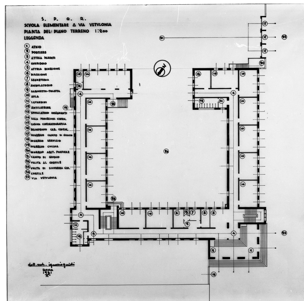This brief testimony, therefore, intended to document, considering the brevity of the discussion, how much the project theme of the schools and university campuses represented an experience of Roman architectural culture, in parallel with the political programs influenced, even conditioned, as well as by the new pedagogical and sociological principles, also and above all from the specific conditions of the urban form within which the interventions were carried out, collaborating together with the architecture of the residence and other services, to imprint the character of the places and determine the results in terms of urban quality, for a politically efficient and innovative idea of a public city.