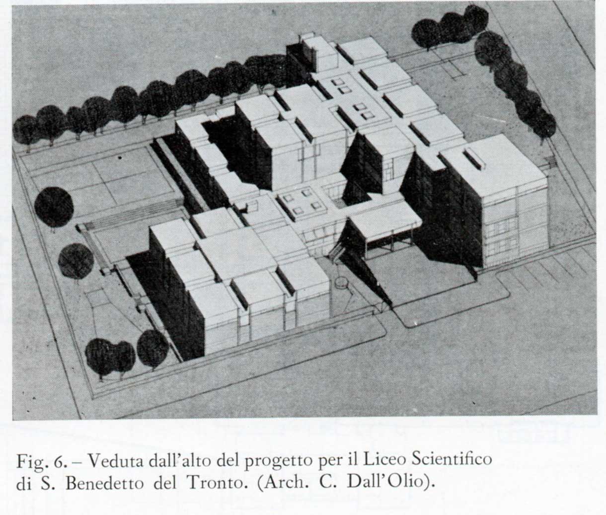 On the “Quaderni del Centro Studi” (new series no. 3) is present, among others, Claudio Dall’Olio with his project for the competition for the Liceo Scientifico in S. Benedetto del Tronto drawn up in the mid-1960s, according to a floor plan divided into modular units corresponding to classrooms and services that surround the larger module, corresponding to the aula magna, and are distributed on the urban lot according to an open plot and dialoguing with the surrounding urban environment. In the same notebook, the Study Center publishes some very interesting projects drawn up in the course of Saul Greco, with commentary texts signed by Sergio Lenci, Saul Greco and Ermanno Leschiutta that deal with “the organization of the technical and professional school as an element of planning”, in particular the “Campus” as a school structure for the city-territory (among the students of the Ciucci course, De Giorgio, Muntoni, Pazzaglini, Toccafondi): «a concentration of school services qualified by specialty and equipment and suitably related and sized with respect to the city-territory can represent an integral structure on which the residence can rest as on one of the fundamental càrdini; that is, an intervention plan is hypothesized in school planning for nuclei concentrated and distributed throughout the territory» (Lenci 1963, p. 28).