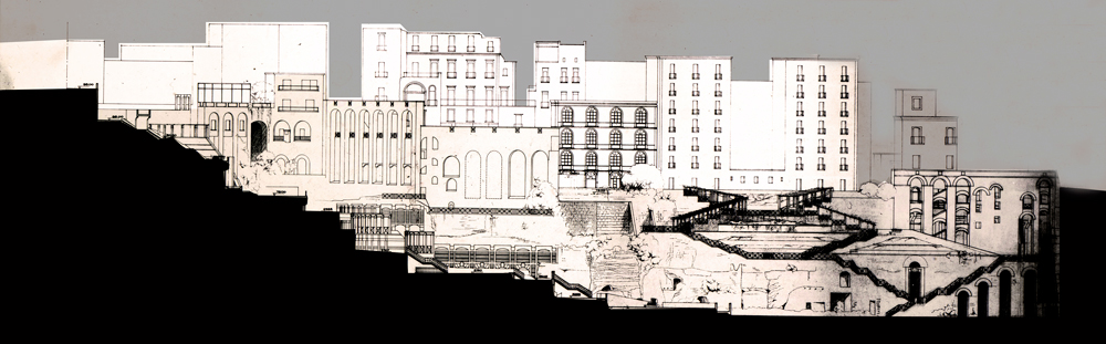 Among the aforementioned personalities, Lucio Barbera, won the competition (contract awarded and final project delivered, but not realized due to conditions of political instability following the Chad war) for the Sebha Campus in Libya in 1972, by whose typological schemes are partly taken from those of the new central offices of the University of Basilicata built in Potenza, designed by the same author in 1990 – a rhythmically-metrically articulated “spinal” system of bridge-buildings, which in the intentions planning should have crossed the valley with the intention of connecting the historic city and the most recent services by foot, entering a space-gallery from the roof, reinterpreted as a modern variant and inspired by the cryptoporticos of the Roman imperial palaces, placing the university building as an indirect solution for an urban and territorial reorganization intervention. Barbera also built a school complex in Naples, within a larger area designed as a public park in Avellino a Tarsia in 1984, inserted in the wider system of about fifty interventions coordinated by himself, for the urban and environmental restructuring carried out in following the 1980 Irpinia earthquake, the Ventaglieri Park. The intervention anticipates a type of urban projects that integrate public functions and services for training, environmental and social requalification in a topographically articulated site, reconstructing the urban identity of a place with historical pre-existing structures; the project has received positive feedback from the inhabitants, as evidenced by the website of the Parco dei Ventaglieri association.