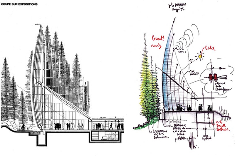 In entrambi sappiamo infatti quanto la ricerca di soluzioni strutturali e costruttive non standardizzate siano cifra stilistica delle loro realizzazioni architettoniche, pur sottolineando ancora una volta la differenza delle architetture finali, dei materiali utilizzati e anche degli esiti grafici dei rispettivi approcci allo schizzo ideativo e al processo di costruzione del progetto che si viene ad articolare tramite esso.