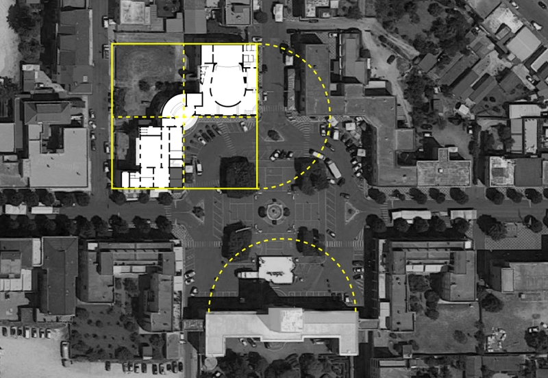 Not surprisingly, most of the drawings made by the authors at the design stage are human-height perspectives in which the sequence of solids and voids is rhythmically defined by the compositional cooperation between the architecture, the horizontal and vertical elements of the in-natural landscape, and the urban enclosures for public activities.