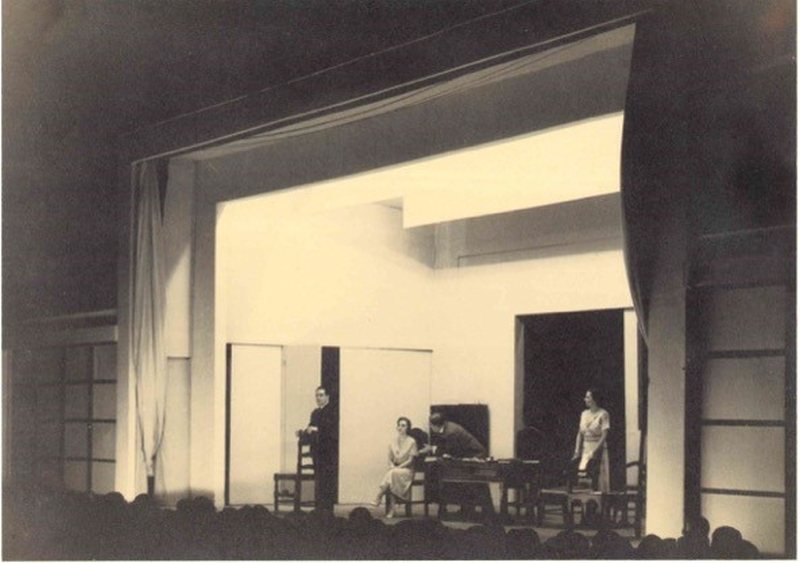 The new theatre will have walls on both sides, like walls, which will enclose the stage and truly give it the form of a room, into which the actors can only enter or leave through real doors. Thanks to a special mechanism they can open in the middle and rotate to act as wings. But in addition to the main stage, there are two smaller stages at the sides, where scenes of secondary importance can be performed. ... When the curtains closing the central stage are open, the three-part stage will form a single unit, with only two pillars to remind us of the partitions. (Kotopouli 1933)