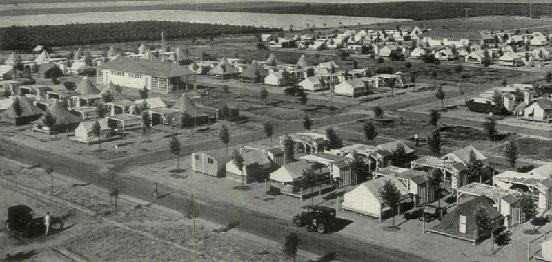 [5] Secondo DeMars, il primo insediamento su pianta esagonale è il campo di Wesley, in California, l’ultimo ancora privo di una rete fognaria.