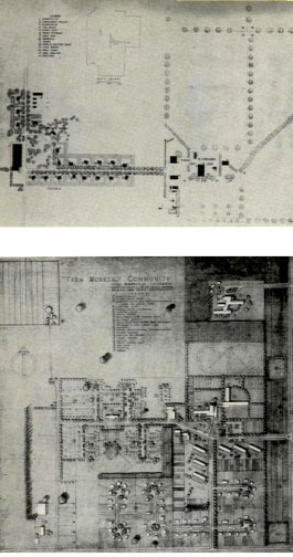 I primi esperimenti del gruppo furono caratterizzati da soluzioni episodiche, talora distanti, quasi a voler saggiare la natura di un terreno di cui non si conosceva la reale consistenza. Ciononostante, per quanto dissimili potessero apparire, questi tentativi condividevano tutti una medesima consapevolezza di fondo: dover fornire, nel minor tempo possibile, risposte adatte al luogo, agli uomini e al tipo di lavoro che avrebbero svolto. A sollecitazioni tipiche di una condizione moderna, il gruppo avrebbe risposto attraverso l’impiego di strumenti e materiali altrettanto tipici: razionalità distributiva, rispetto del dato climatico e attenzione alla dimensione produttiva, tre aspetti riuniti nell’azione congiunta di design, planning e landscape. Sarà questo, in prima istanza, il vero elemento innovatore. È proprio DeMars (1992) a parlarne, in uno straordinario racconto di quegli anni, individuando con chiarezza tutti i passaggi chiave della vicenda.
