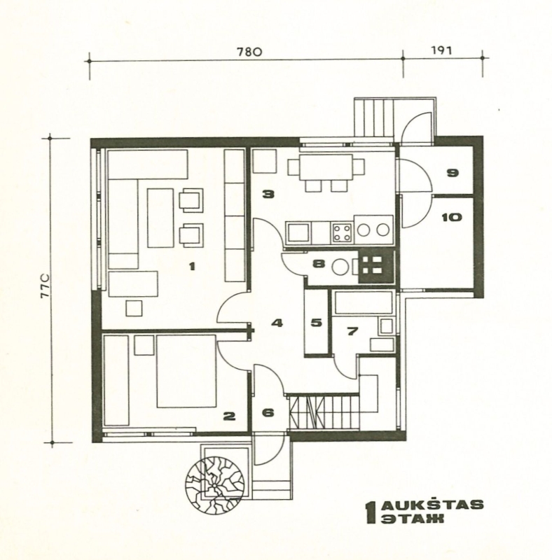 A plenary session of the Soviet Communist Party in 1978 provided another important impetus for the acceleration in the construction of single-family homes. The meeting reaffirmed the belief that well-trained specialists in agriculture could be drawn to work in rural areas by the assurance of better living conditions. This ideology was soon reflected in the so-called Alytus House produced by the Alytus Experimental Home Construction Factory in Southern Lithuania, which produced a traditionally looking wooden frame panel houses. It can be seen as perfect compromise between the challenge of restoring single-family homes in rural settlements and the strict requirements imposed on construction industrialisation and assembly. [Fig. 3, 4]