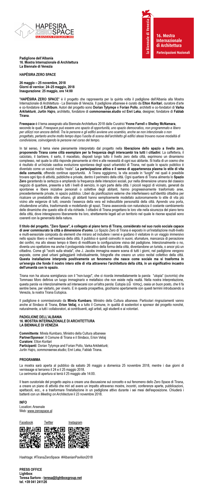 Padiglione dell'Albania - HAPËSIRA ZEROSPACE