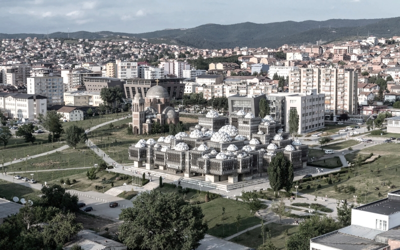 [1] Il rapporto del 1953 sulle città e paesi in Serbia definiva l'architettura esistente della città di Pristina come remota, e quindi soggetta alla cosiddetta «ricostruzione radicale generale» dell'«aspetto primitivo e della povertà dei valori del patrimonio materiale e architettonico della città»