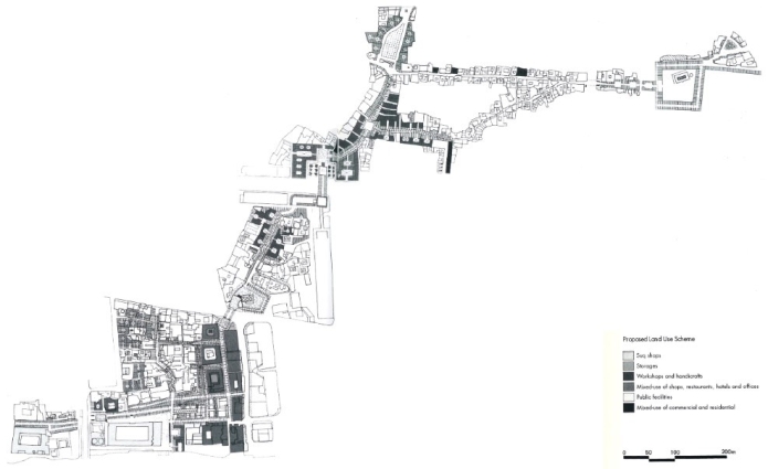 In a continuous cross-reference with the city of Baghdad, and especially with the historical settlement of Rusafa – which will prove to be of extreme importance at a methodological level due to the aforementioned need for parallels – it is considered useful to compare the previous strategic reading with the design operations proposed for the Iraqi capital by Stefano Bianca, in which, after the preparation of an overall structural plan, the study of more specific plans is hypothesised: while on the one hand a "passive control" over the residential fabric is foreseen – therefore the endowment of a cautelative urban regulation for private interventions – on the other hand, "active" interventions of architectural design, linked precisely by belonging to coherent and recognisable systems, as in the case represented by the street that connects the Tigris river to the sanctuary of Gaylani (fig. 2).