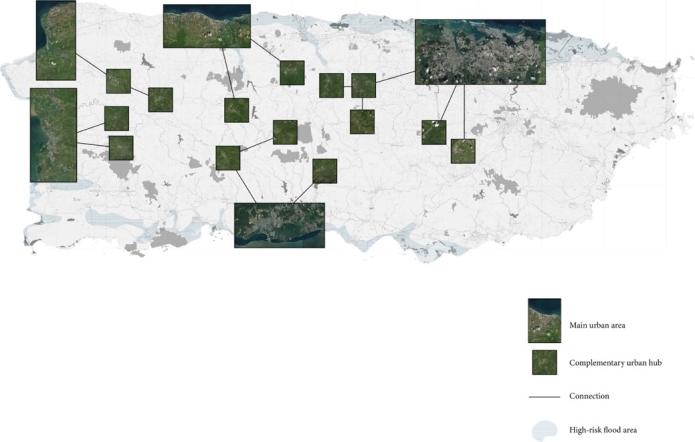 Nell’ottobre 2017 la School of Architecture della University of Florida con sede a Gainesville ha accolto sette studenti e tre docenti sfollati da San Juan dopo gli uragani Irma e Maria che si erano abbattuti consecutivamente sull’isola. In quell’occasione Martha Kohen, partner accademico della UNESCO Chair in “Sustainable Urban Quality” della Sapienza, già preside della scuola di architettura di Gainesville e di Montevideo, con un gruppo di docenti di Puerto Rico e di accademici americani ha avviato l’ipotesi di organizzare un ciclo di ricerche progettuali (nel 2021 è prevista la quarta edizione) intitolato Puerto Rico Re_Start, finalizzato a produrre indirizzi e linee guida a supporto del processo di ricostruzione, coinvolgendo nel confronto professionisti locali, imprenditori, politici, istituzioni pubbliche e private locali, ecc. L’edizione Puerto Rico Re_Start 1 si è concentrata sul caso di San Juan esplorando diverse aree urbane e periferiche danneggiate dagli uragani, fra le più povere e difficilmente accessibili; l’edizione Puerto Rico Re_Start 2 ha sviluppato progetto per la costa Nord, in particolare ad Ovest di Puerto Rico, in luoghi dal potenziale pregio turistico ed insediamenti abbandonati; l’edizione Puerto Re_Start 3 ha affrontato il difficile caso della costa Ovest, quella meno urbanizzata, oggetto di interesse per ipotetici sviluppi dell’industria del turismo, già in parte occupata da industrie di biotecnologia. Puerto Re_Start 4 (programmata per settembre 2021) si applicherà allo studio della costa Est e delle montagne interne. La ricerca si è svolta attraverso workshop collaborativi a cui hanno preso parte studenti portoricani, statunitensi, italiani e di altre nazionalità (studenti Erasmus e in mobilità extraeuropea presso la Sapienza Università di Roma). Alcuni dei temi sono stati approfonditi dopo il workshop attraverso tesi di laurea o nei corsi di studio semestrali tenuti dalle diverse sedi accademiche coinvolte, e sono stati in parte pubblicati (Canella, Del Monaco, 2018; Del Monaco, 2018).