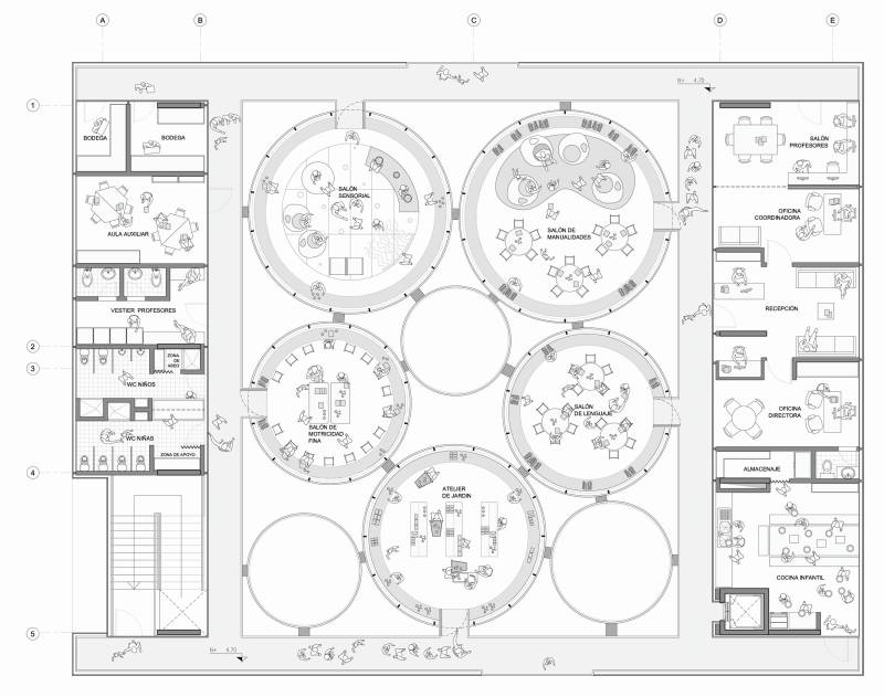 [4] One of the first projects that the practice worked on, and which later became exemplary and referential for many others, was the El Porvenir project (2009). Between completed projects and competitions, the office has dealt with dozens of projects of educational spaces for children, primary education and universities.
