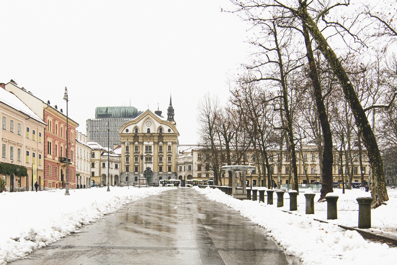 [7] Lacerti delle mura romane emergono nel parco che si affaccia su Erjavčeva cesta di fronte al Palazzo Presidenziale e a ridosso del margine meridionale dell’ex convento delle Orsoline, ove è necessario avvicinarsi per poterle osservare e traguardare poi lo sguardo verso la città antica.